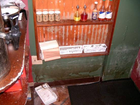 This photo was taken two weeks after Katrina hit, the water is still two feet deep.